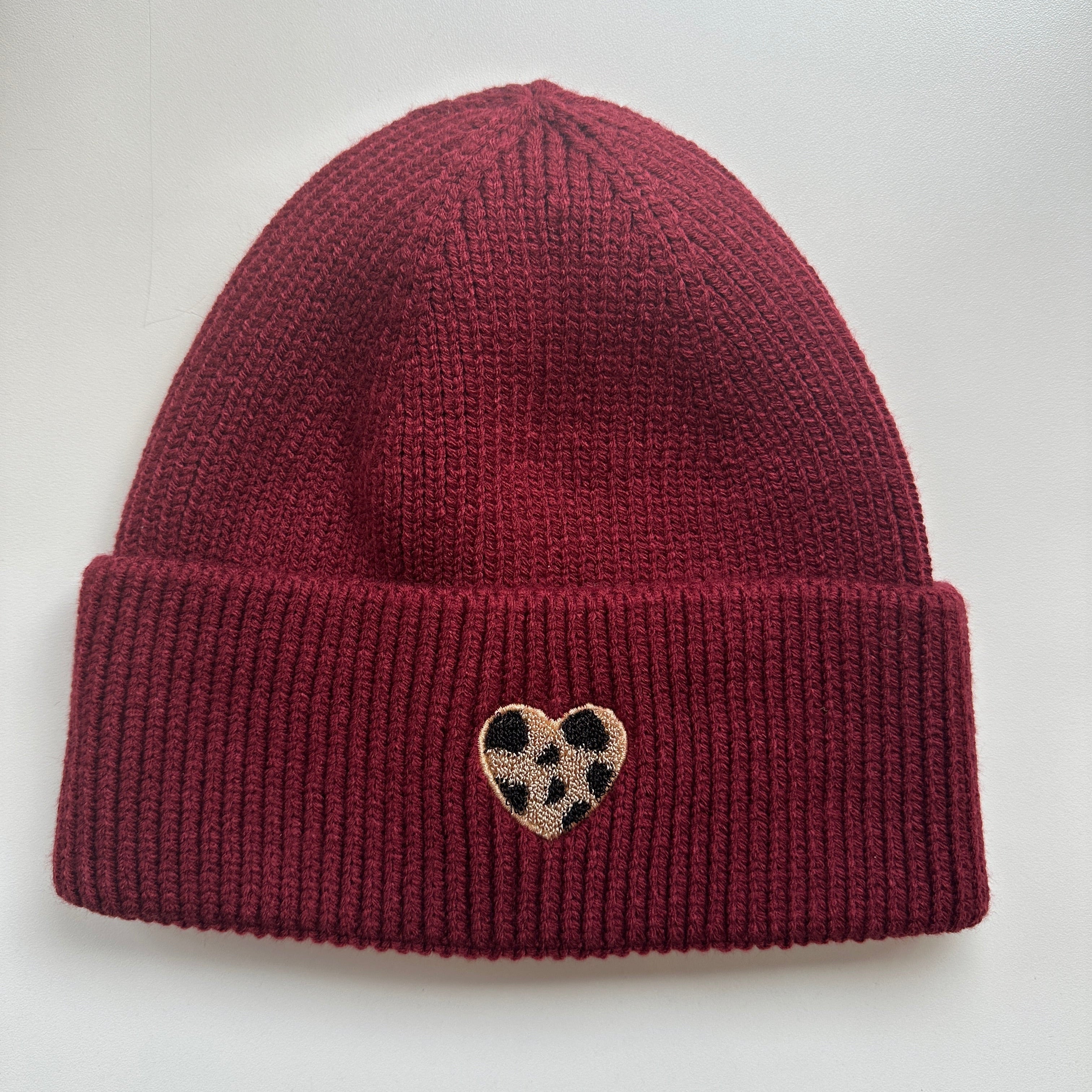 Im angesagten Bordeaux schmeichelt diese Beanie deinem Teint und hält deine Ohren schön warm. Als kleiner Eyecatcher dient das kleine Leoherz, was sie zu einem besonders schönen Accessoire macht.
