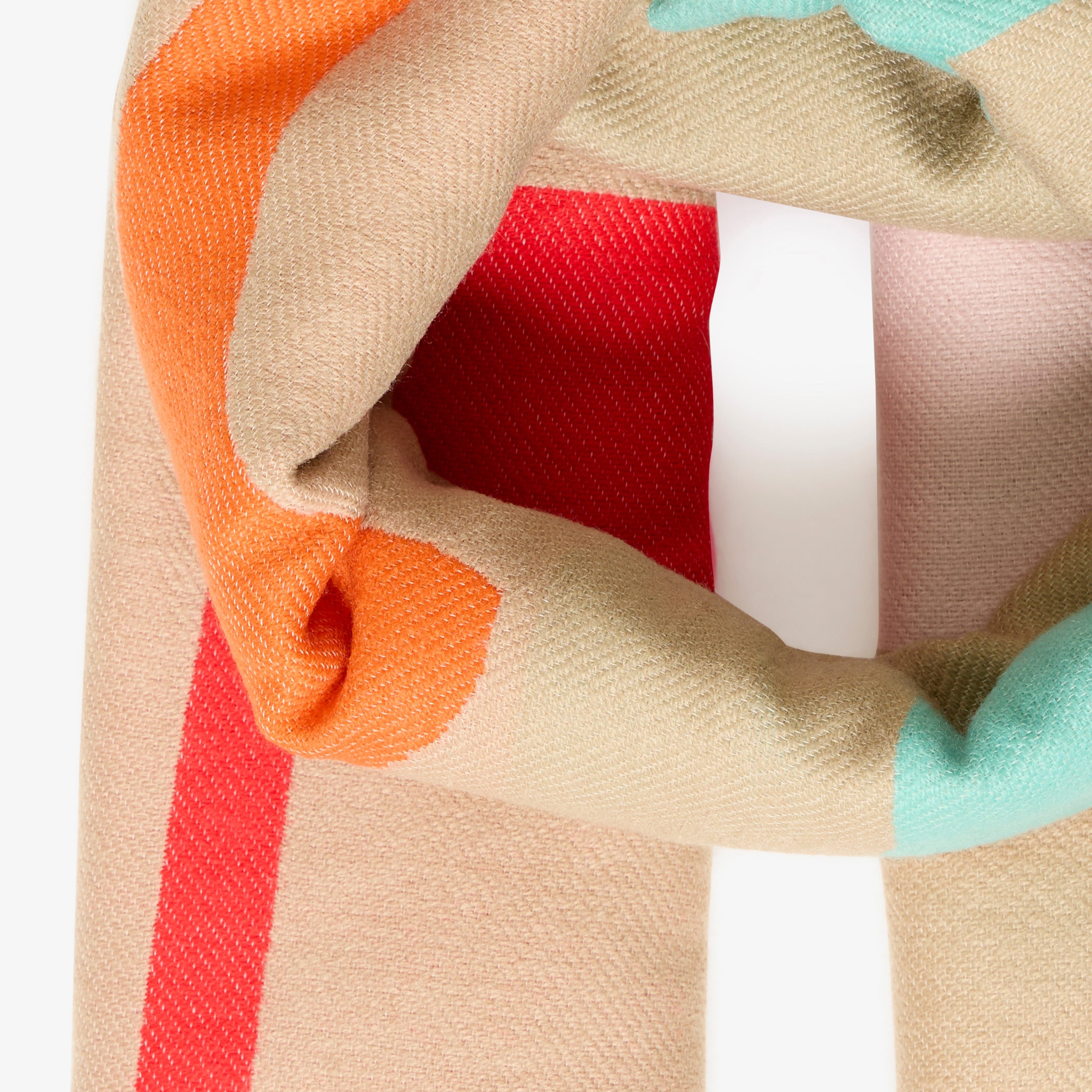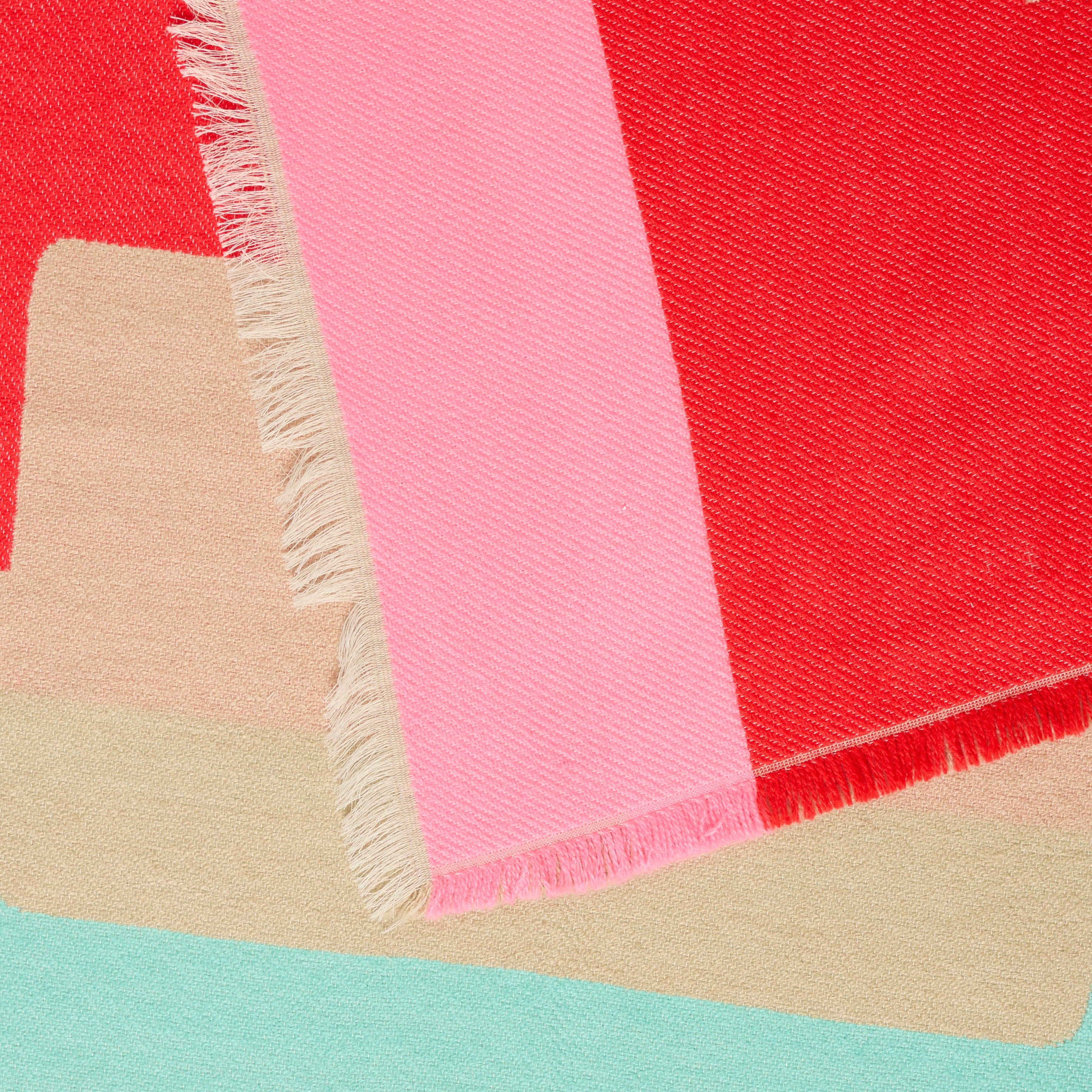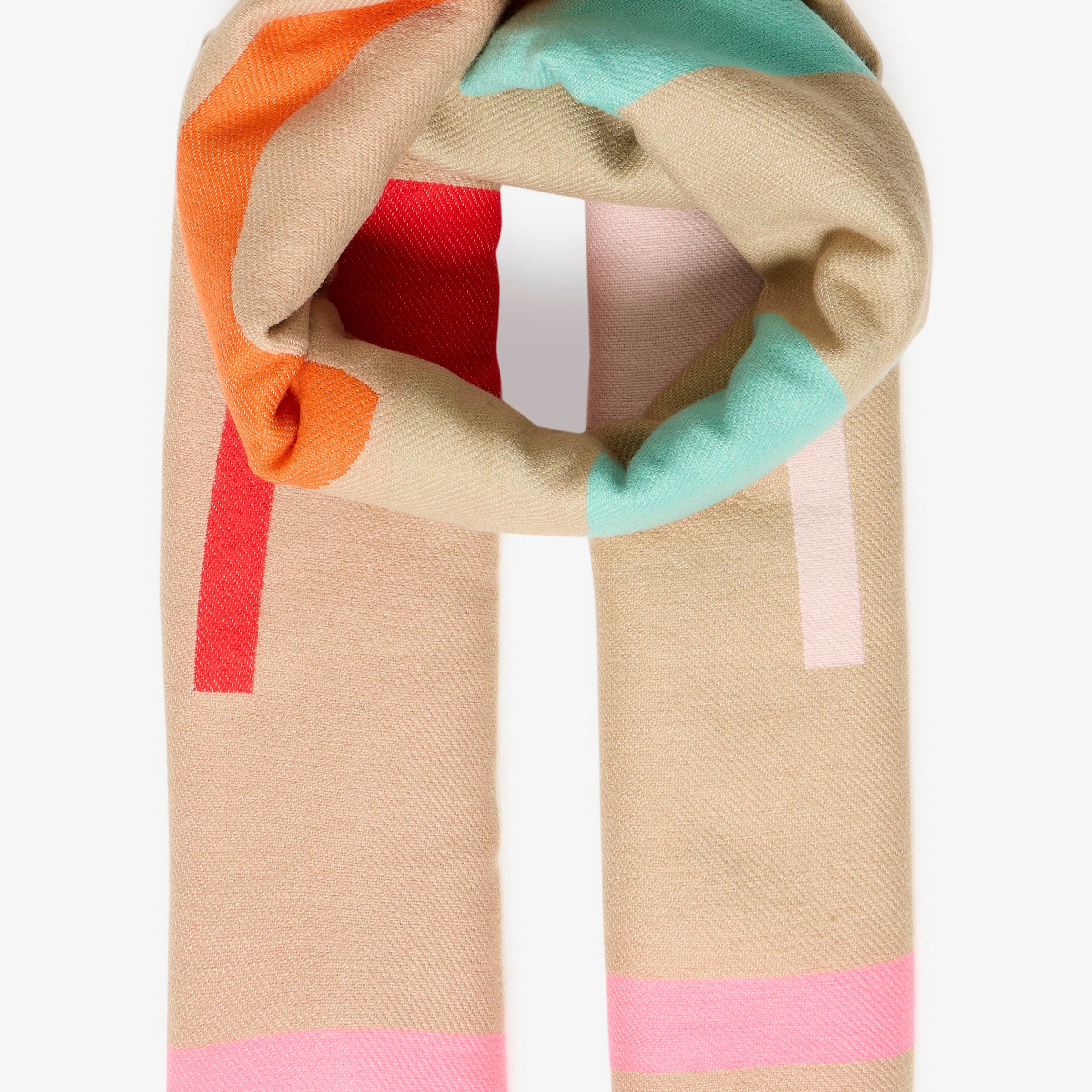 Dieser weiche, fein gewebte Schal hält dich nicht nur kuschelig warm, sondern lockert auch noch jedes Outfit auf. Das beige Grunddesign wird mit farbigen Kontraststreifen in grafischem Look aufgelockert. Wir lieben den Mix und das Spiel mit den Farben :)