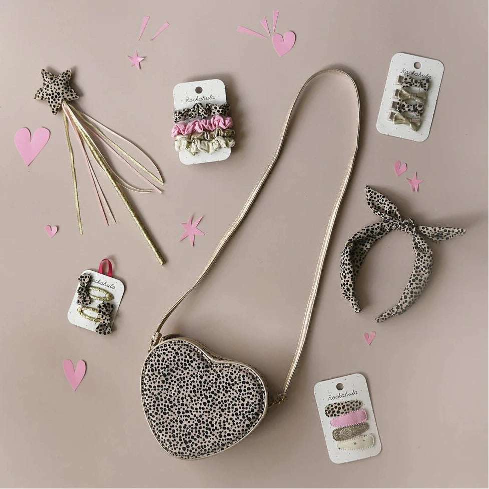 Diese zauberhafte Herztasche ist ein toller Begleiter für kleine Abenteurer*innen. Mit ihrem Herzförmigen Design und dezentem Animal Print ist sie auch bei den kleinen direkt angesagt. Die Gold Details am Reißverschluss und am verstellbaren Band runden dieses neue Lieblingsstück perfekt ab.