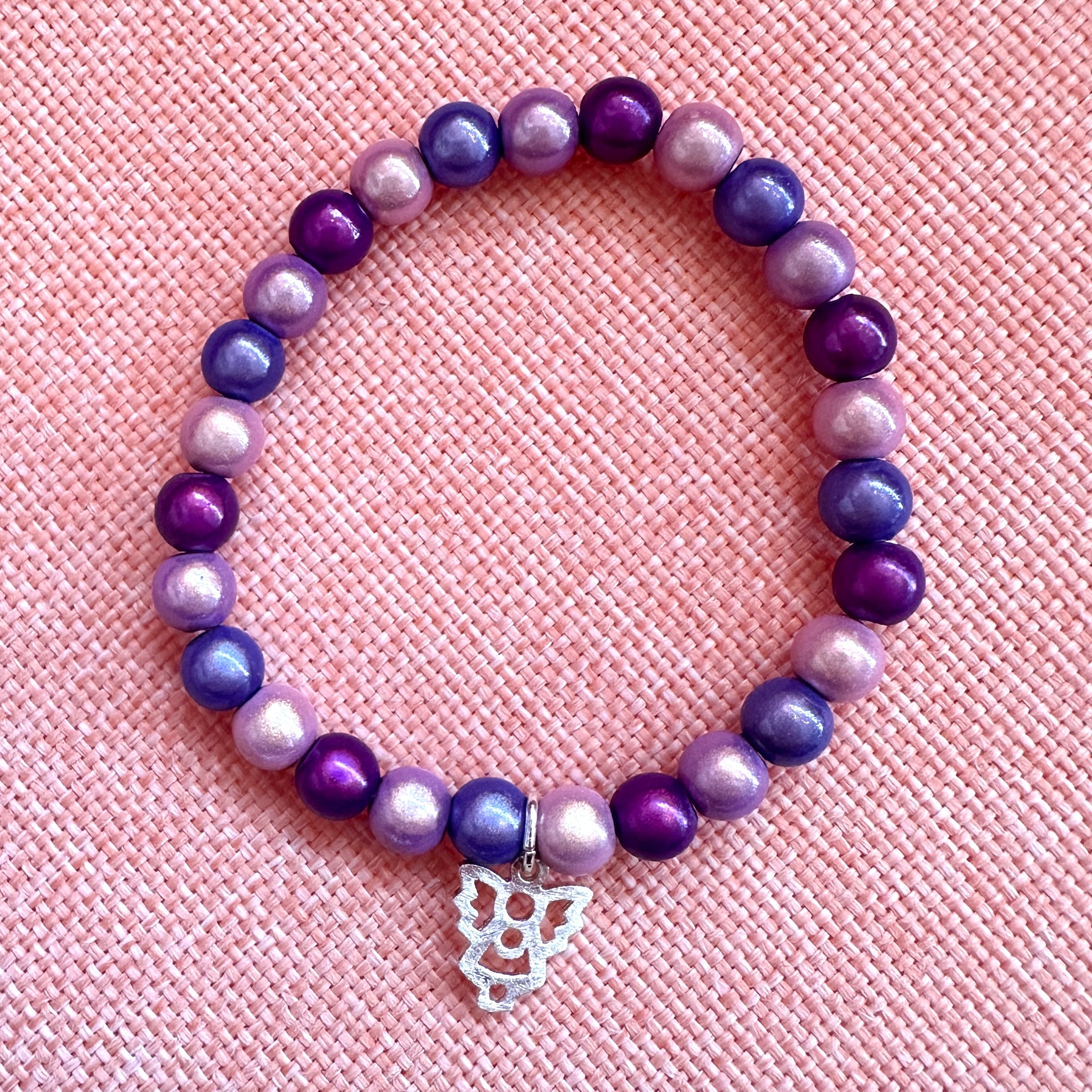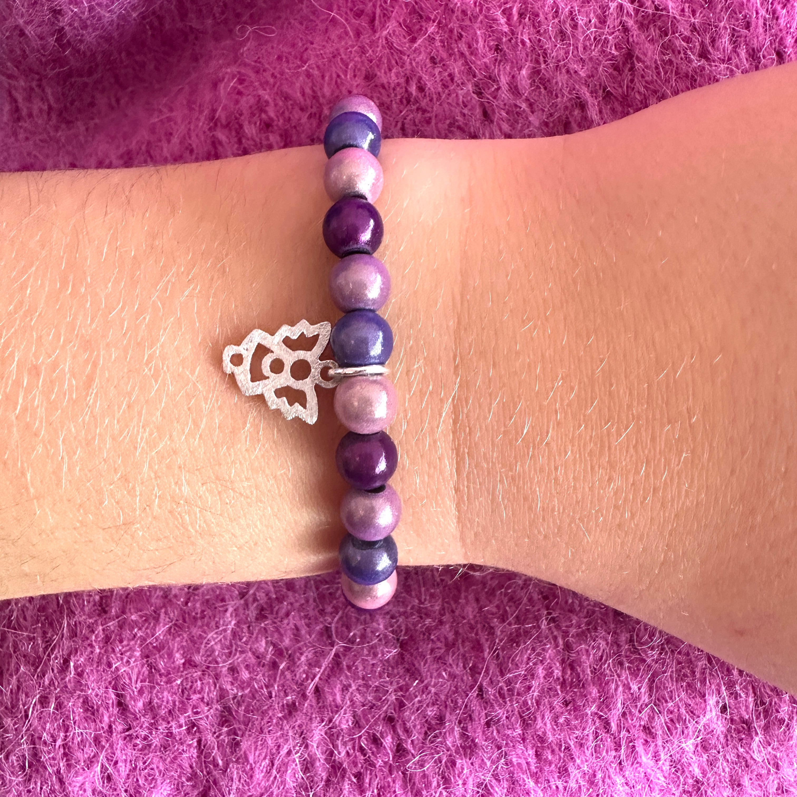 Diese Kinderarmbänder sind auf Elastikband aufgefädelt und mit einem hochwertigen Anhänger aus 925 Sterlingsilber geschmückt.