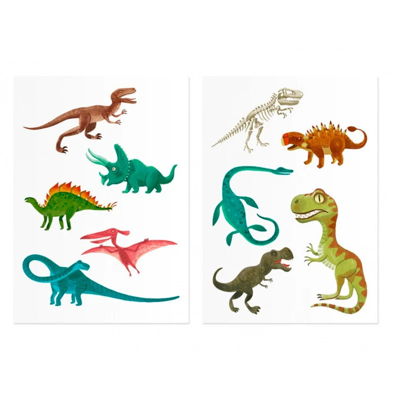 Tattoo-Set mit 10 verschiedenen Motiven zum Thema Dino. Diese wunderschön illustrierten Tattoos lassen Kinderherzen höher schlagen und halten sich ca. 3 Tage auf der Haut.