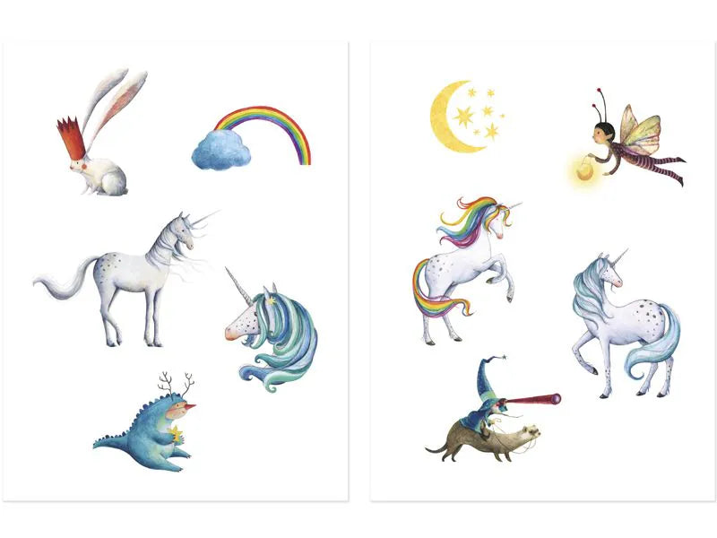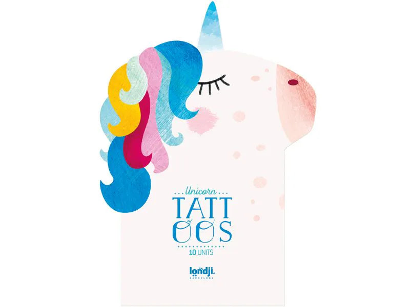 Tattoo Set mit 10 verschiedenen Motiven zum Thema Einhorn, die Kinder lieben werden. Die wunderschön illustrierten Bilder lassen Kinderherzen höher schlagen und halten ca. 3 Tage auf der Haut.