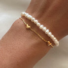 Gefertigt aus natürlichen und damit unperfekt geformten Perlen ist jedes Armband ein echtes Unikat. Die rundlich geformten Süßwasserperlen verleihen deinem Look eine edle Note und lassen sich super mit anderen Armbändern kombinieren. Wir lieben den Look!