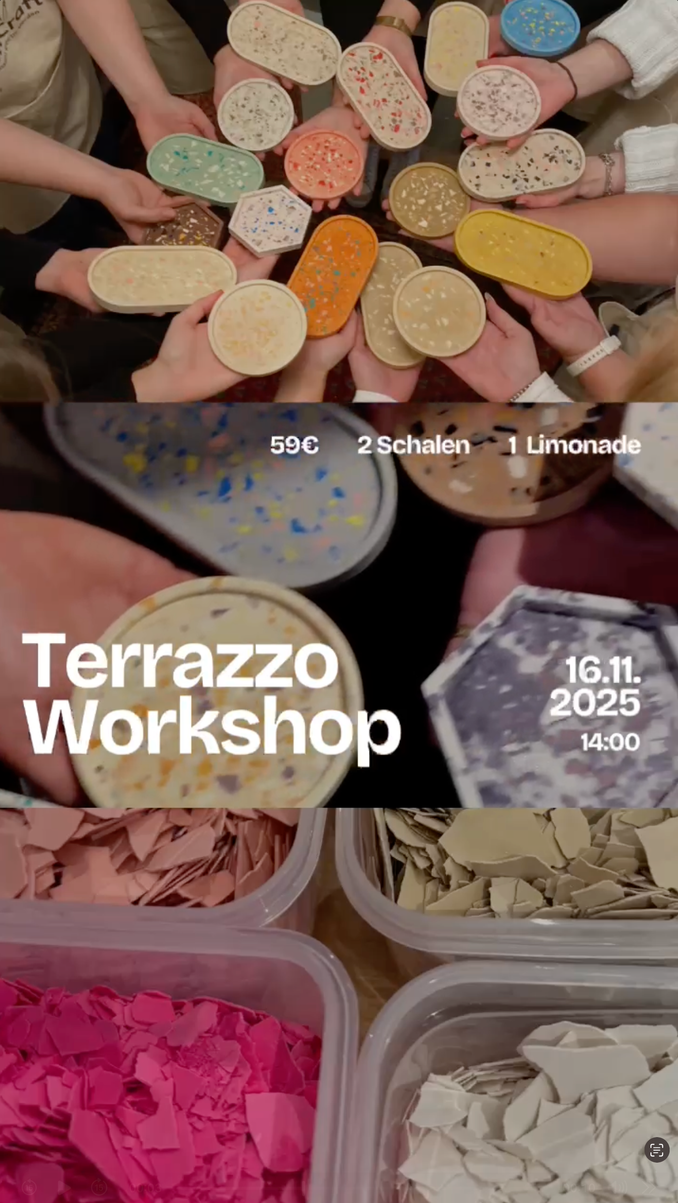 Wir entwerfen in Kooperation mit StuttCraft wunderschöne Terazzo Schalen. Preis für zwei Schalen und eine Willkommenslimonade