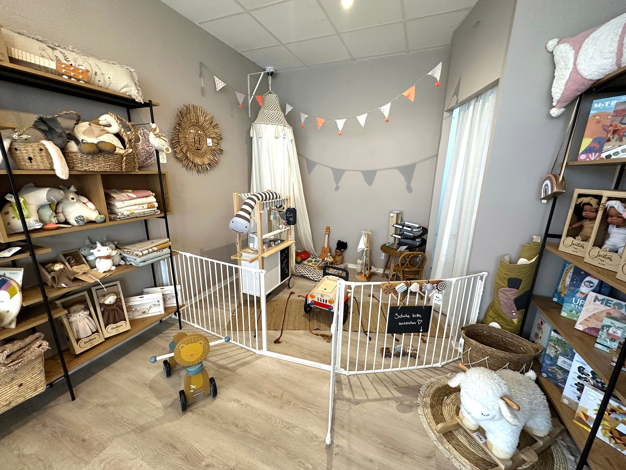 Hier können deine Kids spielen, während du mit deinen Freunden einen Kaffee trinkst oder dir in unserem Store etwas Schönes aussuchst. Wir möchten nicht nur für die Großen eine Wohlfühloase sein, sondern eben auch für die Kleinen.