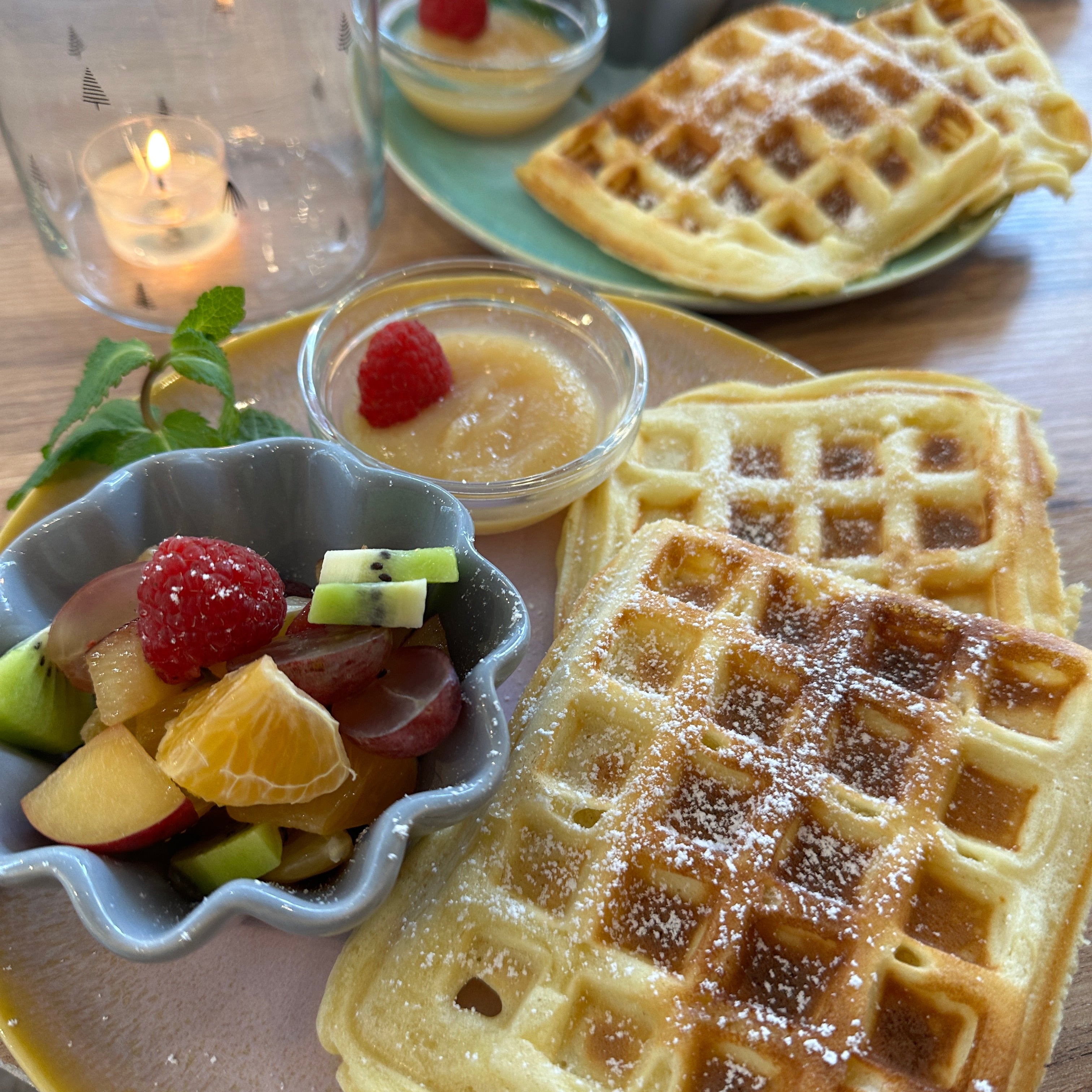 Freitags ist außerdem unser unglaublich beliebter Waffeltag – hier gibt es frische, belgische Waffeln mit Obst und Apfelmus. Man munkelt, es seien die besten Waffeln weit und breit :)