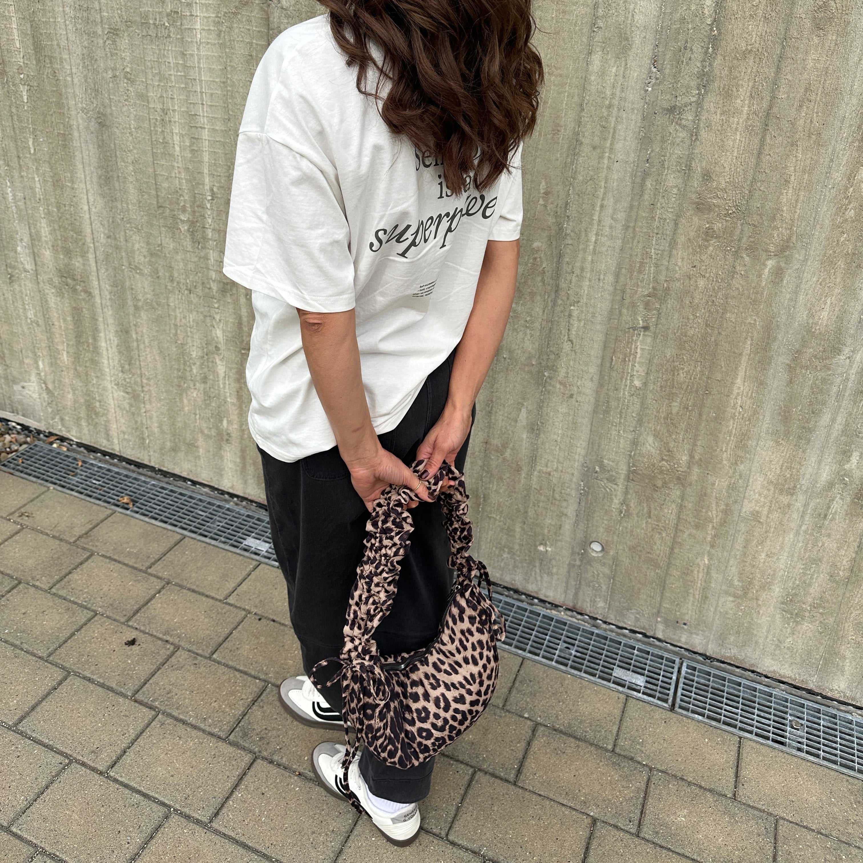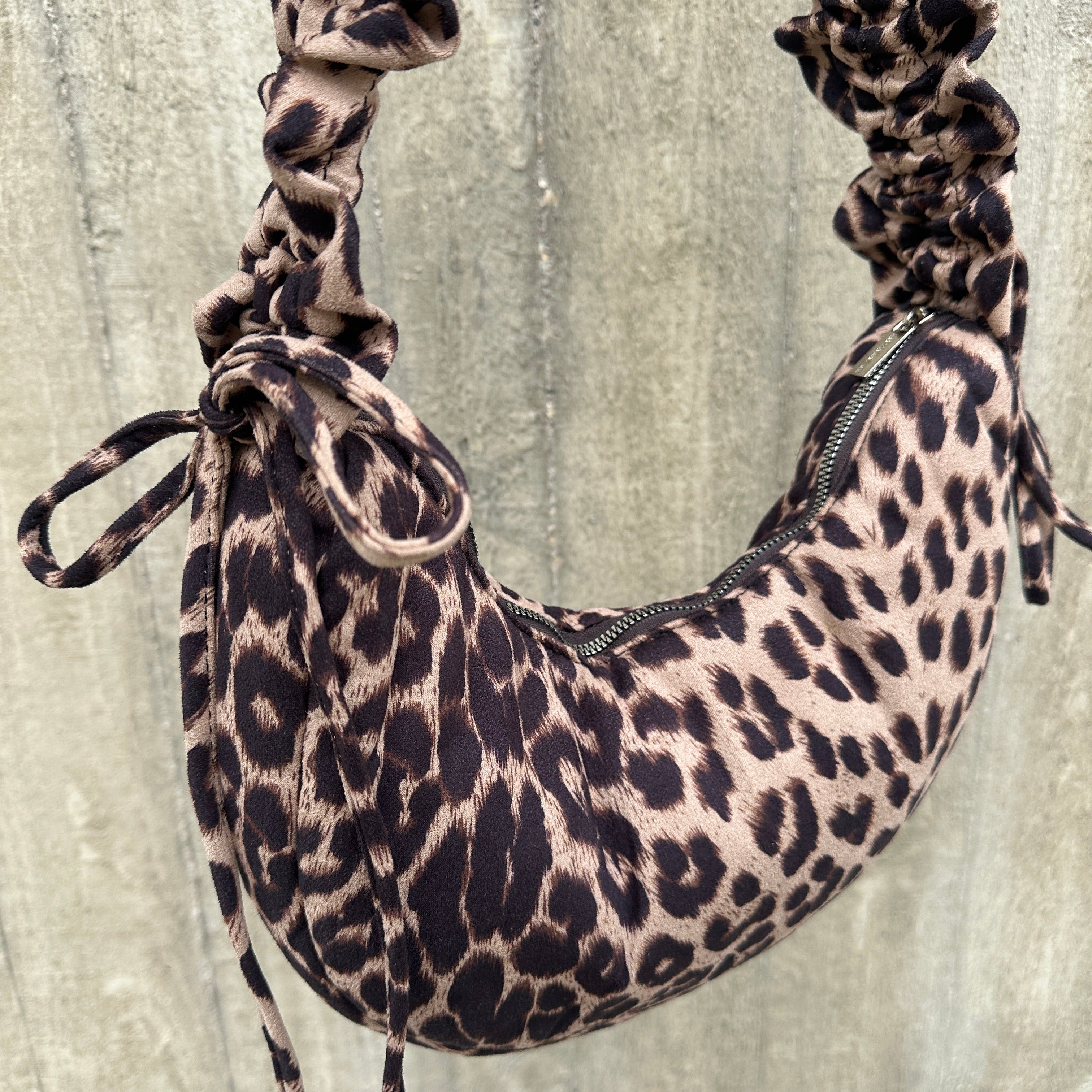 Diese halbmondförmige Tasche kombiniert verspieltes Design mit modischem Animal-Print und ist der perfekte Hingucker für jedes Outfit. Das auffällige Rüschen-Detail am breiten Schulterriemen verleiht der Tasche eine feminine Note und sorgt für ein angenehmes Tragegefühl.